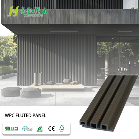 Panel de pared de uso exterior, revestimiento impermeable de Wpc, Panel de revestimiento estriado de Wpc ignífugo para uso en exteriores